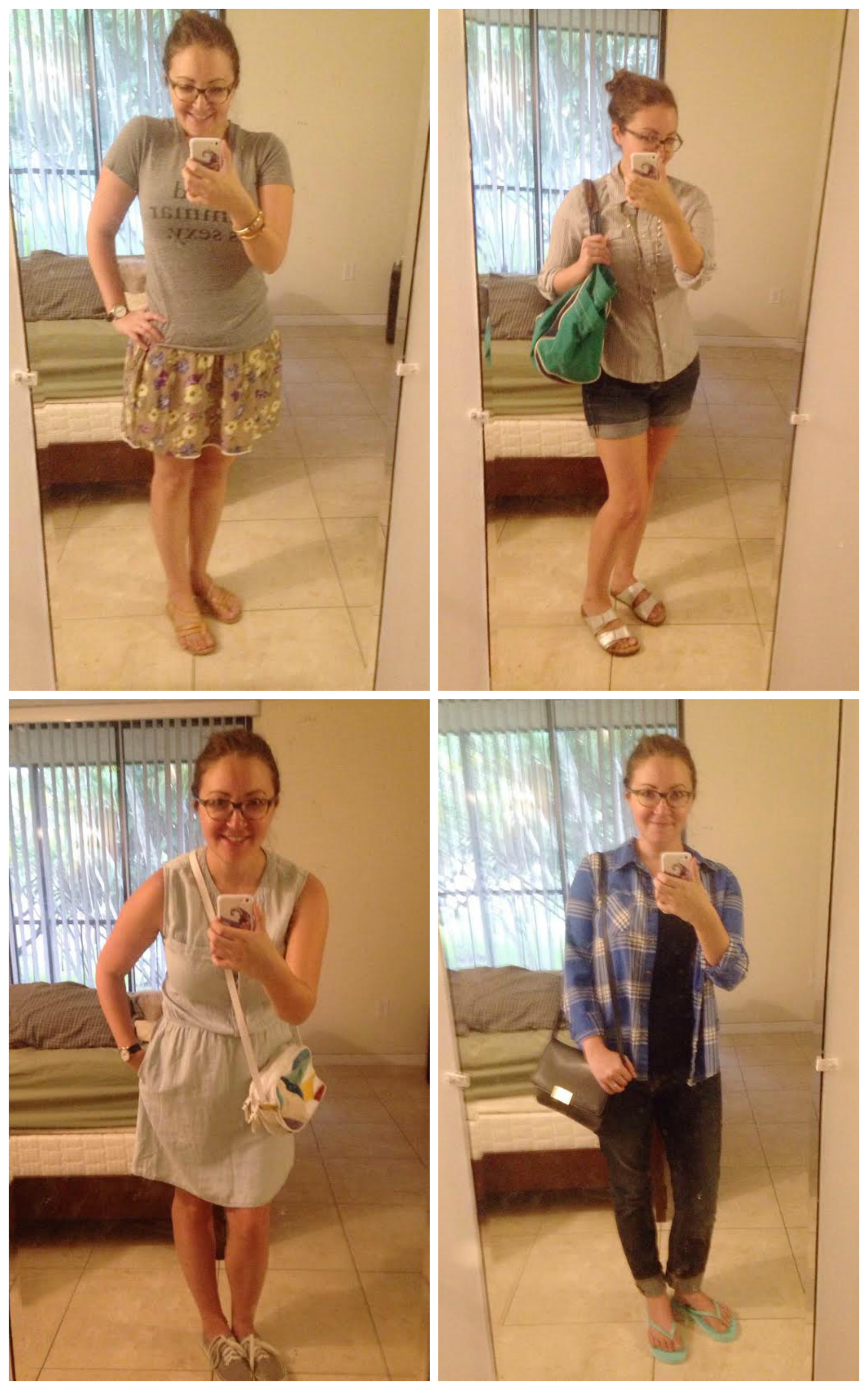 There’s a few reasons I’ve felt less than inspired by clothes the last month. 1) I’ve been working from home. 2) Florida is HOTTTT! The less clothes the better, HEY-OOO! 3) Buying a bunch of new pieces really hasn’t been in my budget. So, just for fun I decided to have a nose-around through the ol’ closet and dresser drawers and see if I could come up with a few outfits to be excited about. My goal was to put together 4 looks for ME. 4 looks that would meet my day-to-day needs, so I’ll actually wear them, and made up of 4 components, so I can get out of the shorts + top look I’ve been over-wearing as of late. I’m not saying these ensembles are on trend by any means or advocating for you to replicate them. (I realize it’s actually Fall in MOST of the U.S. and not a million degrees like these pieces would have you believe, lol.) However! I DO recommend a rifle through clothes you already own if you’re stuck in a bit of style rut. You no doubt have WAY more options than you think. And if nothing else, it’s kinda fun to play dress-up!