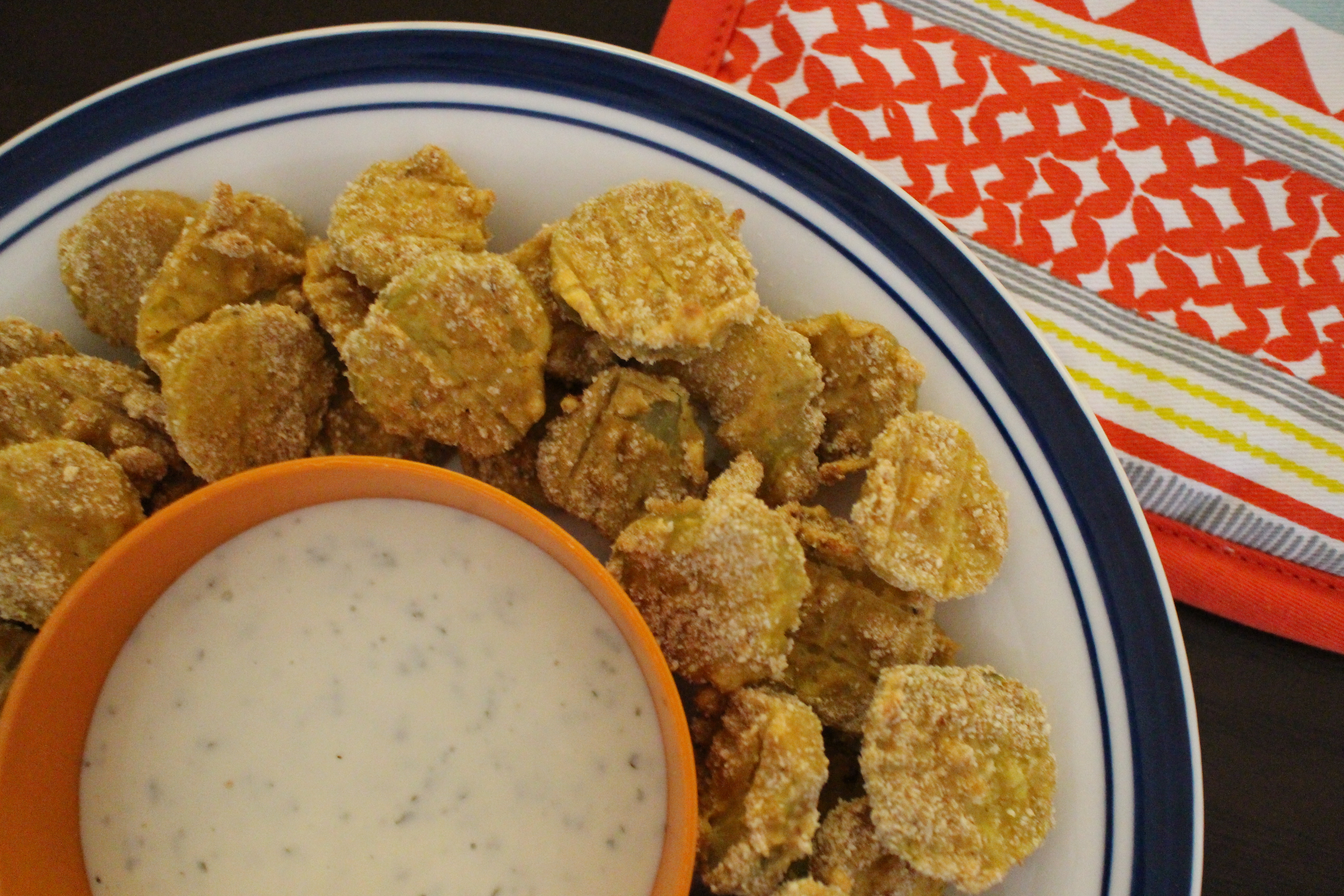 – Take the pickles back out and arrange on a plate. Serve them up hot with a side of ranch for dipping! Enjoy!