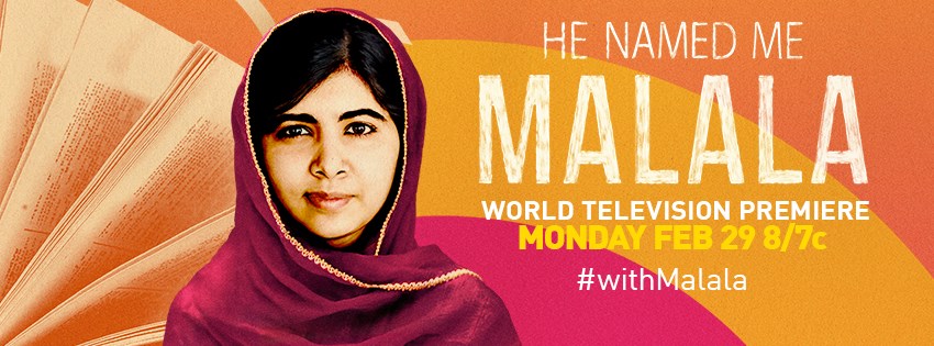 He Named Me Malala will premiere commercial free on Monday, February 29th at 8 pm (EST) on the National Geographic Channel in the U.S.