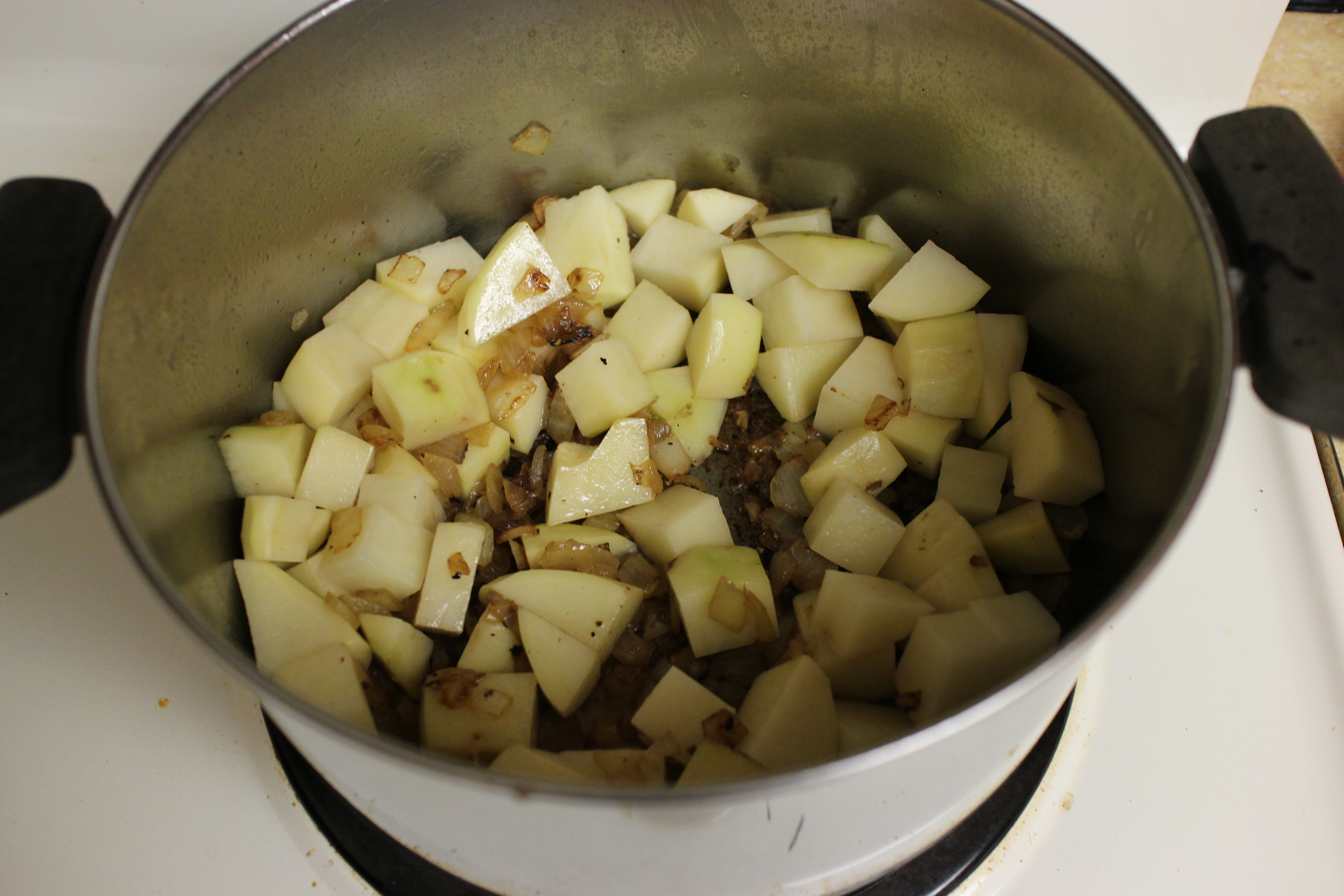 – Heat the chopped onion in a pan with some olive oil until the edges start to caramelize.