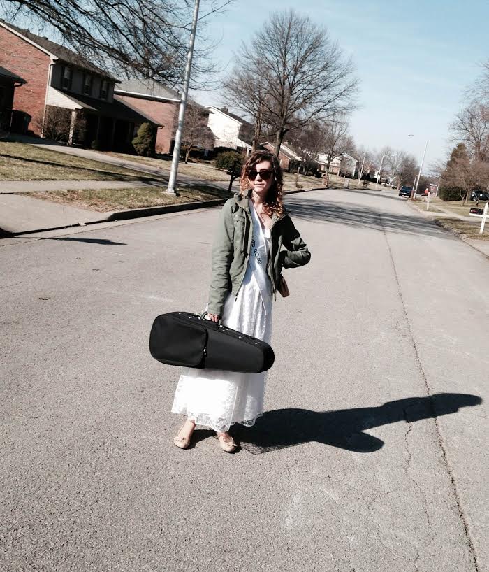 Of course earlier in the week she stopped by my house for some practice. My dining room floor is as good a spot as any. : )